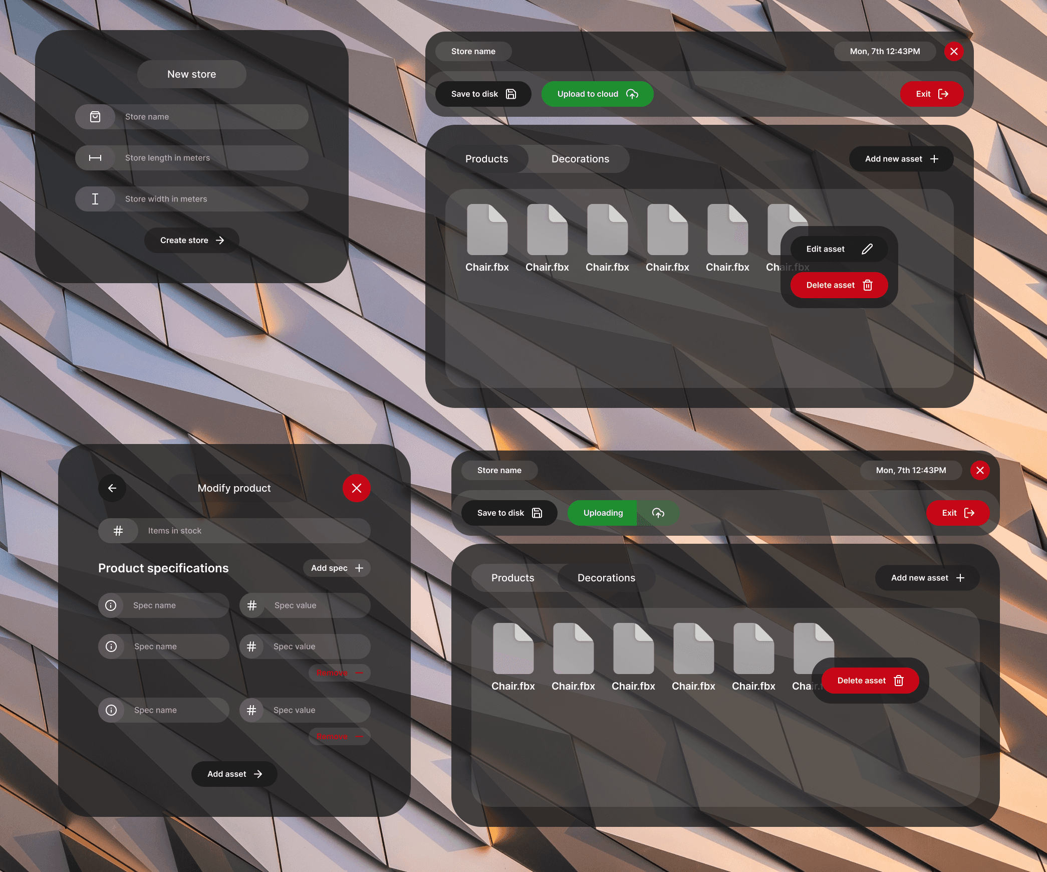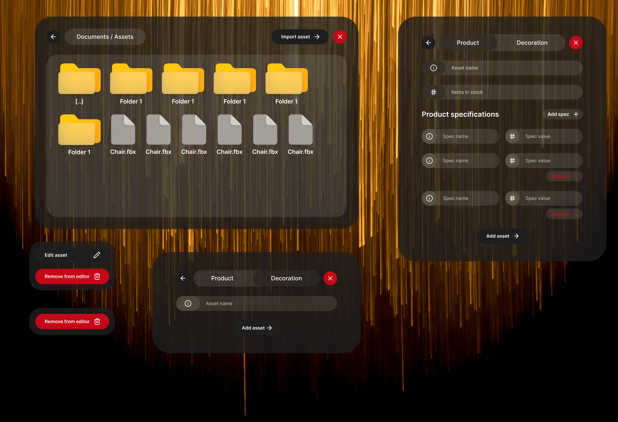 This VR application utilizes Unity to create an interactive environment allowing users to import, edit, and save 3D models. The main goal of this work is to design an easy-to-use platform for creating and manipulating virtual worlds that will increase the user’s efficiency when making an online shopping store.